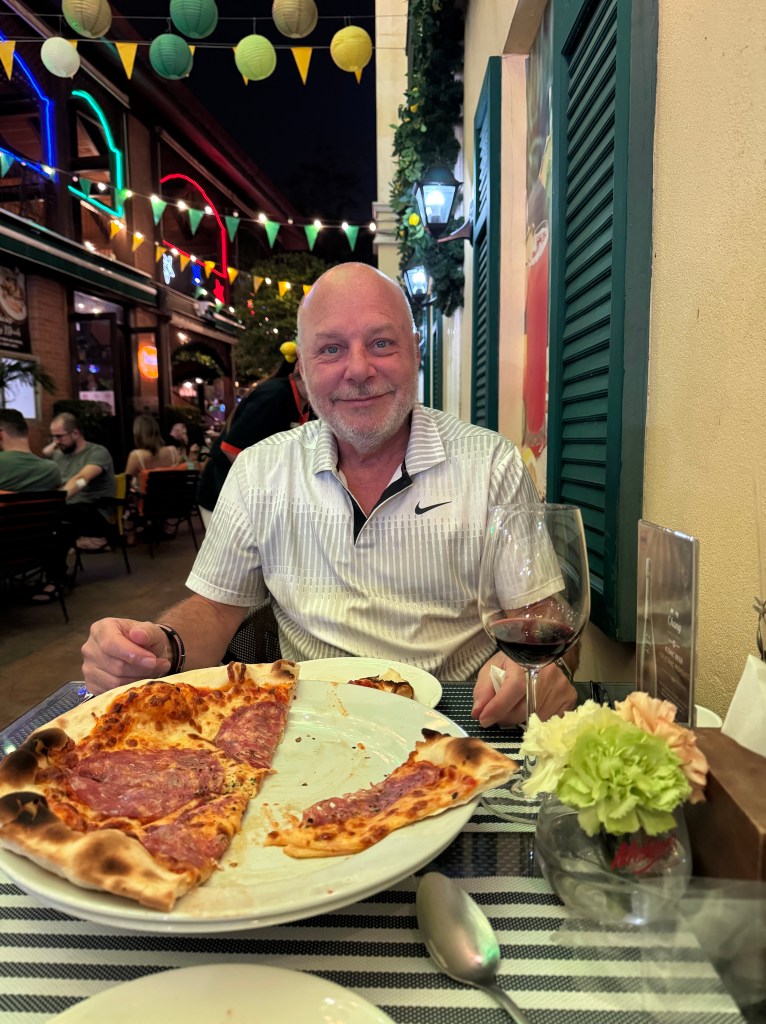 Des ruelles minuscules, des marchés éclatés de couleurs, des gratte-ciels qui côtoient des maisons en bois, des moines en robe orange qui marchent à côté de touristes perdus… J’en ai pris plein la gueule — et plein la carte mémoire. On a aussi fait un dernier arrêt à notre restaurant préféré. Vous savez, celui où il y a toujours ce chanteur qui met une ambiance parfaite, et cette pizza absolument incroyable. Un problème ? Je suis vraiment poche pour me souvenir des noms, alors évidemment… je n’ai aucune idée comment le restaurant s’appelait. Mais dans ma tête, ça reste notre spot à Bangkok, et ça suffit.