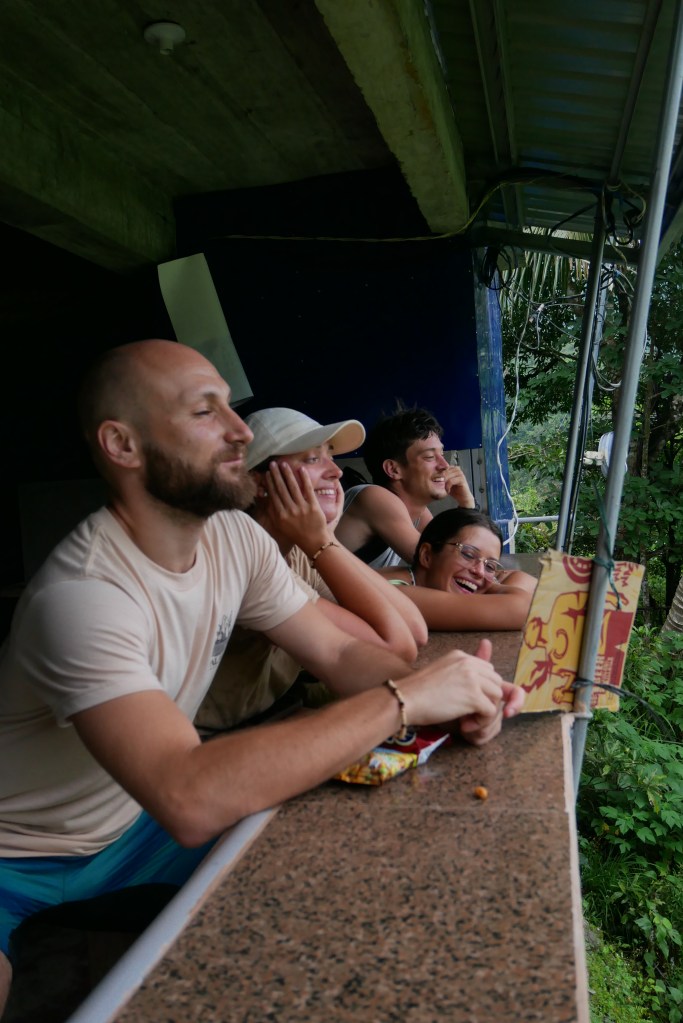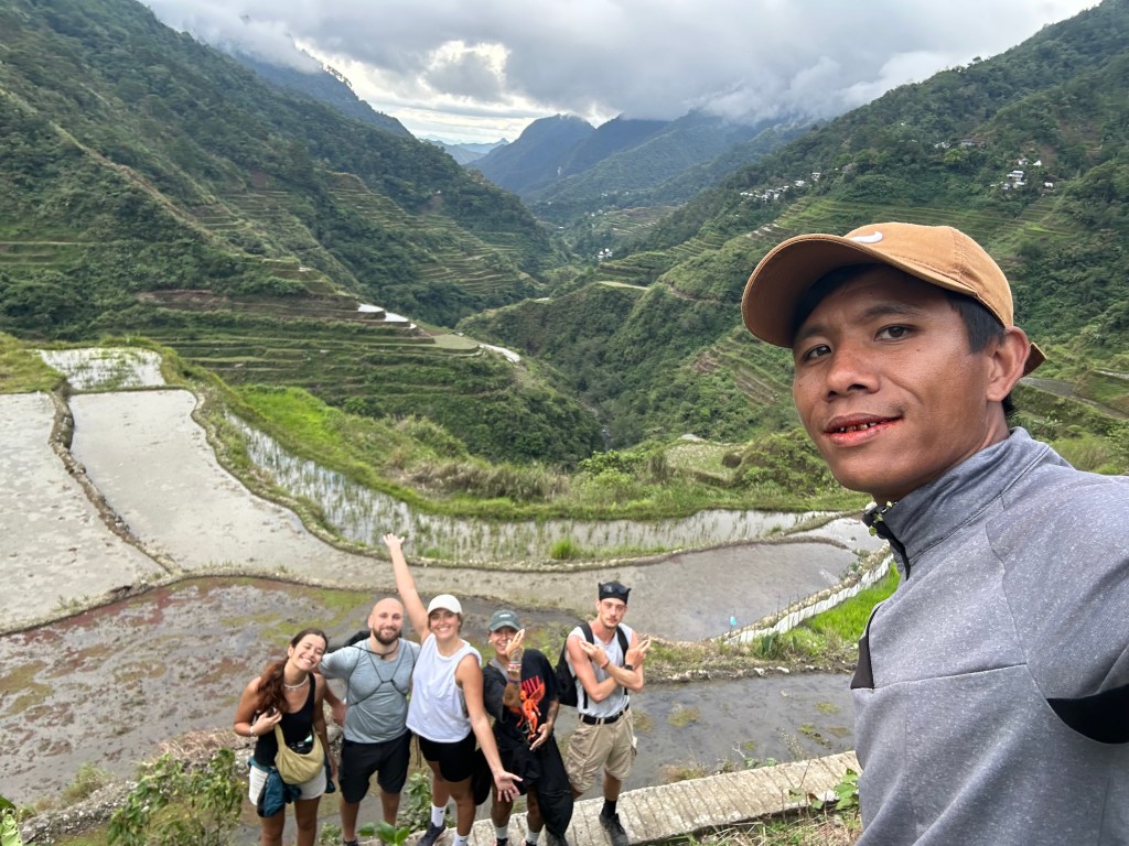 Le soir, on dormait dans des auberges familiales. Pas de luxe : des matelas fins, des murs en bois, des douches froide. Mais il y avait toujours un repas chaud, du riz bien sûr, des légumes, parfois un peu de viande. Et surtout, il y avait ces moments où tout le monde se retrouvait dans la même pièce, à parler, à rire, à partager des histoires. C’est lors d’une de ces soirées que le karaoké a commencé. Aux Philippines, le karaoké n’est pas une activité, c’est presque une religion. Quentin, d’abord crispé à l’idée de chanter, a fini par se laisser entraîner. Le voir, micro en main, chanter devant des locaux restera l’un de mes souvenirs préférés du trek. Esti qu’on a rit !