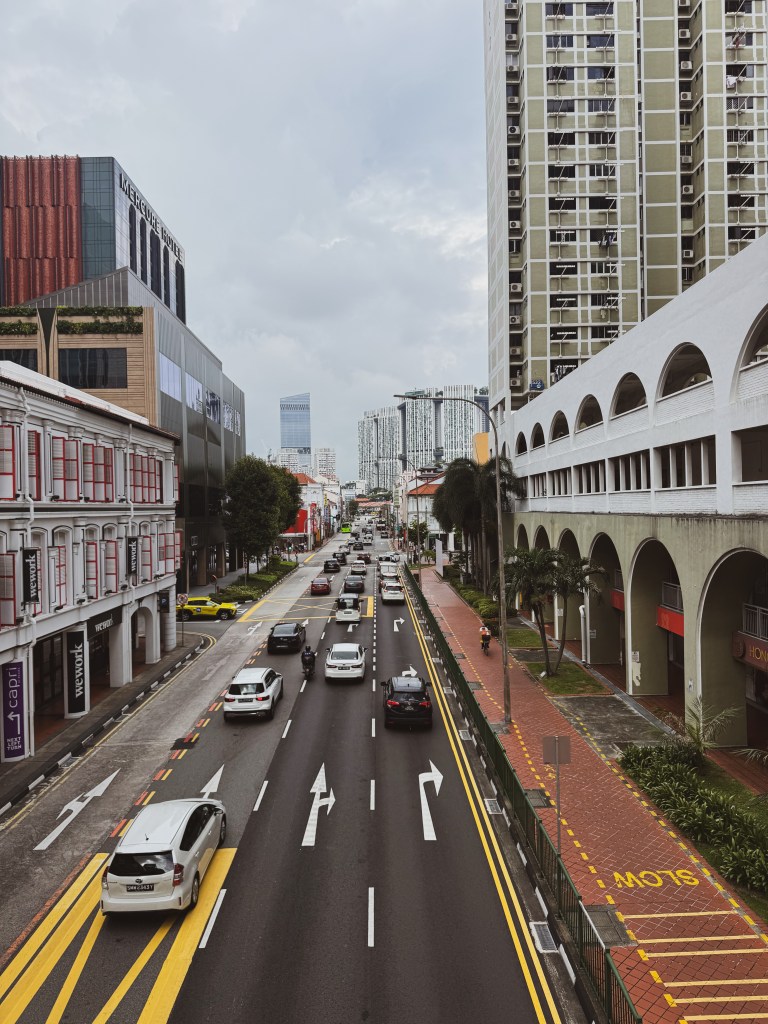 Pour essayer de respirer, j’ai pris la rue à pied, juste pour sentir Singapour au réveil. Premier constat : propre, brillant, net. Trop net. Les trottoirs étincelaient, pas un papier ne traînait, pas un scooter pour frôler mes jambes. Pas de chaos, pas de bazar, pas de vie sauvage comme j’en avais connu partout ailleurs en Asie. Même l’air semblait filtré, saturé d’odeurs florales, comme si quelqu’un avait mis des diffuseurs géants dans chaque coin.