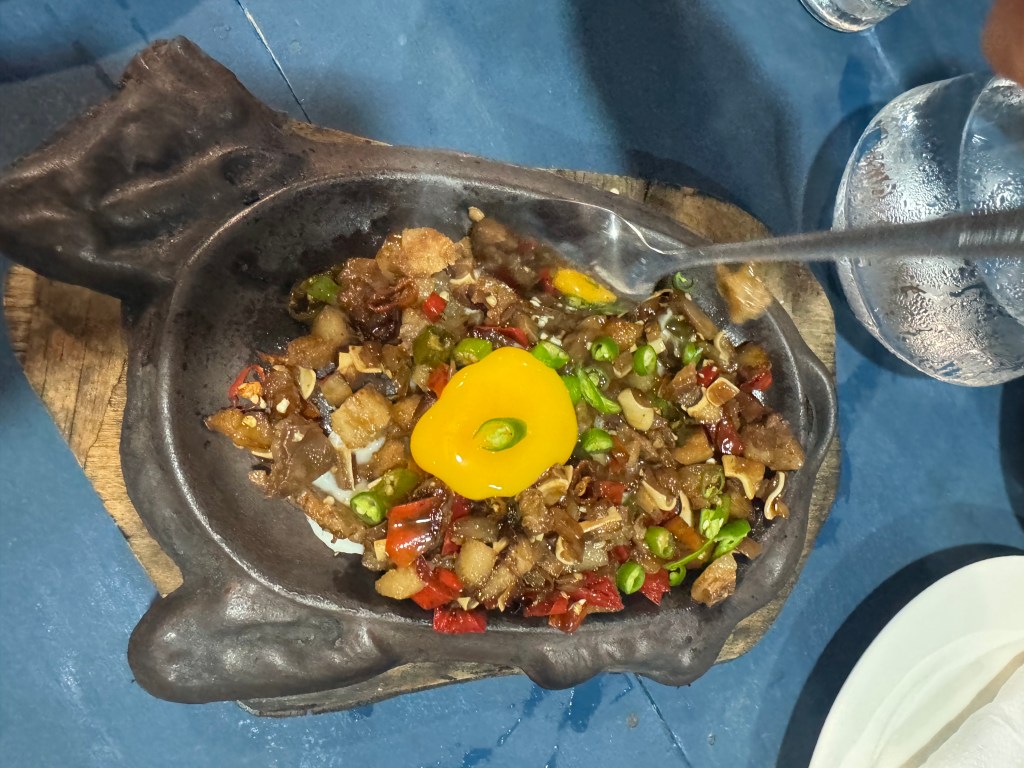 Le soir, trouver un restaurant a été… compliqué. Dans ce coin-là, il n’y a vraiment pas grand-chose. On est tombés sur un genre de fast-food style PFK, mais ça ne nous tentait pas. Finalement, on a trouvé un petit restaurant vide. Mauvais signe. Très mauvais signe. On a commandé un pork sisig parce que la dame nous disait que c’était délicieux. Résultat : un tas de gras avec des piments. Je vous épargne la note.