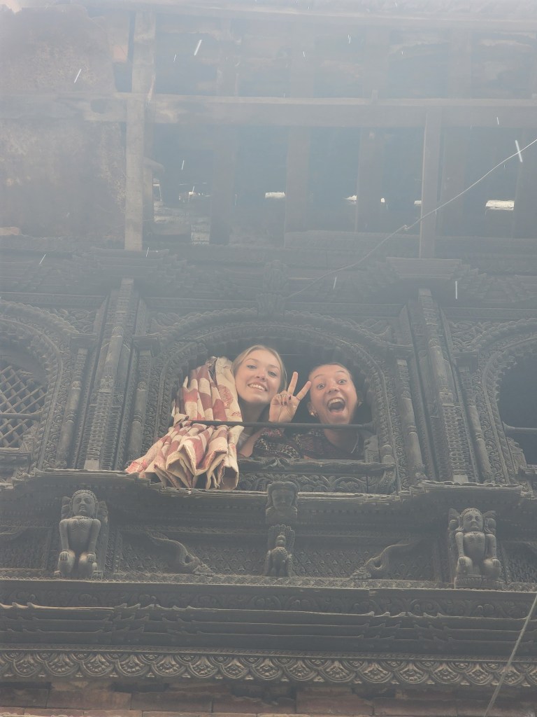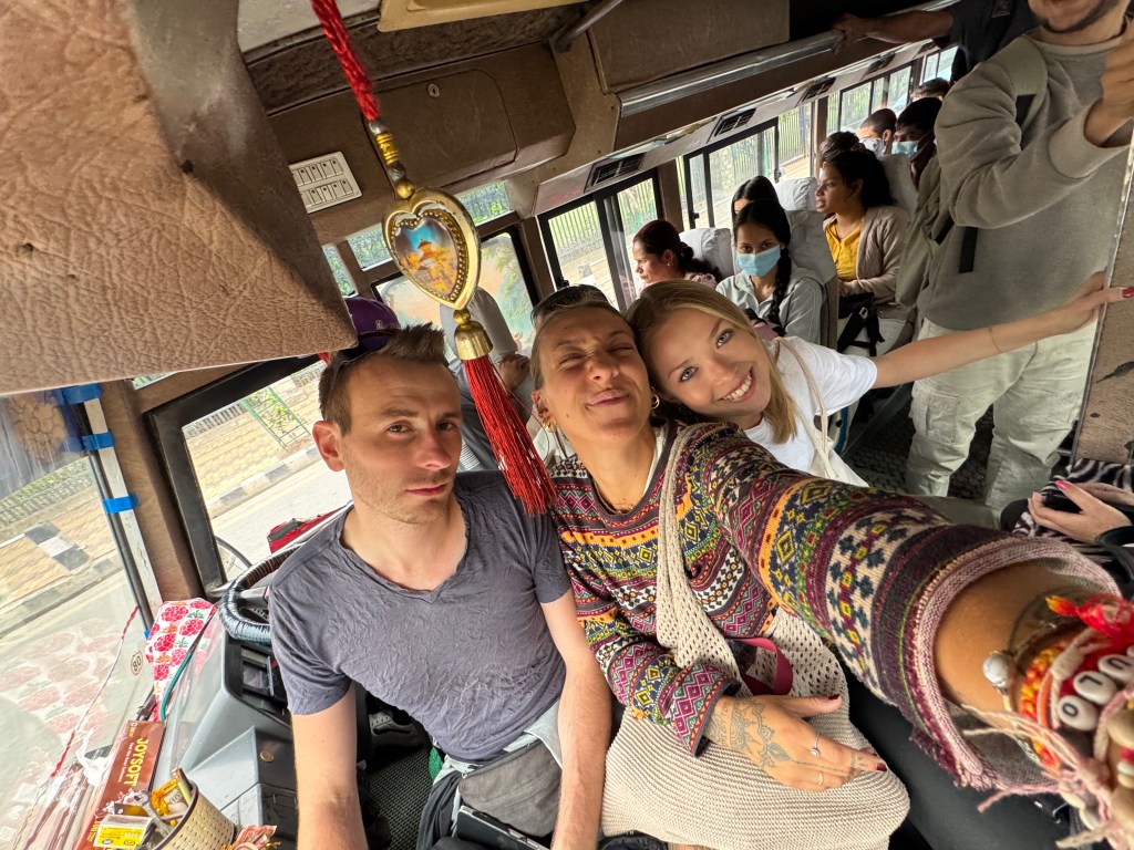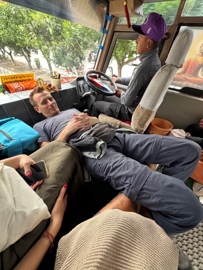 Avec Benjamin et Julia, on a décidé d’aller à Bhaktapur en bus local. Assis tout à l’avant, juste derrière le pare-brise, on avait l’impression d’être dans un film, sauf que le chauffeur roulait comme s’il essayait de battre un record mondial. Le bus était plein, bruyant, la musique népalaise jouait trop fort, et pourtant, c’était l’un de mes trajets préférés. C’était vivant, chaotique, authentique.