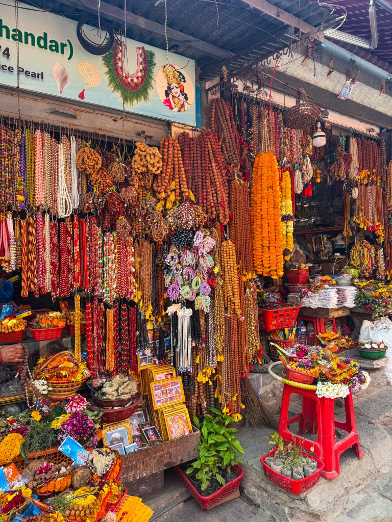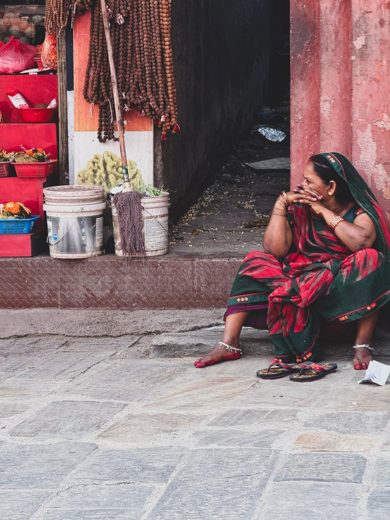 Nous avons traversé un petit pont en pierre en observant les sadhus, ces ascètes hindous au corps recouvert de cendres, vêtus de tissus safranés. Ils étaient immobiles, presque irréels, assis en silence ou en train de bénir les passants. Leur regard était si intense que j’avais l’impression qu’ils lisaient directement dans mes pensées.