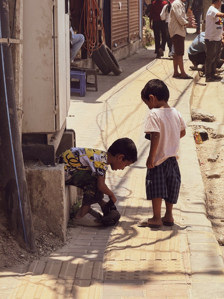 Alors, me voilà à Katmandou, retrouvant ma best bodi Sayanne, rencontrée lors de mes premiers jours au Népal. Benjamin était parti en Inde (tristesse 😢), mais Sayanne et moi étions prêtes pour des aventures locales. Première journée : shopping à la népalaise. Entre deux échoppes colorées, des enfants jouaient avec… un corbeau mort. Oui, vous avez bien lu. 😂 Ajoute à ça des montagnes de déchets et un chaos doux, et tu obtiens l’essence de Katmandou. Mais malgré tout, c’était du pur plaisir. On riait, on marchandait, on goûtait aux saveurs locales — et on s’en fichait de tout le reste. ❤️