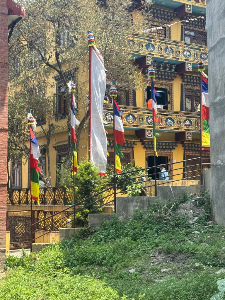 Après la balade, un petit repas dans une échoppe simple mais authentique. Plein d’épices, de chaleur, et ce sentiment que chaque bouchée raconte une histoire. On a goûté au momo — ces raviolis népalais incroyablement addictifs — et au dal bhat, le plat traditionnel à base de lentilles et riz, nourrissant et réconfortant, parfait pour récupérer après une longue marche. Et le hasard a voulu que ce soit la fête de la naissance de Bouddha. Les temples étaient animés, les rues décorées, et des chants flottant dans l’air créaient une atmosphère vibrante et paisible à la fois. C’était beau, authentique, et profondément humain. Une journée simple, mais tellement pleine.
