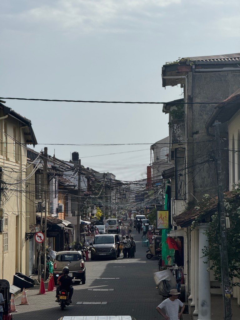 On a commencé par visiter le centre à pied, et honnêtement, c’était une des meilleures décisions. Galle Fort, c’est un autre monde. Un mélange d’Europe et d’Asie, figé dans le temps mais encore bien vivant. Les rues sont bordées de bâtiments coloniaux, héritage des Portugais, des Hollandais et des Britanniques, avec leurs murs blancs, leurs volets en bois, leurs petites cours intérieures cachées. Tu passes d’une boutique moderne à une vieille maison chargée d’histoire en quelques pas. Il y a des cafés, des galeries, des hôtels un peu fancy, mais sans que ça perde son charme. On a marché sans réel plan, juste à se perdre dans les ruelles, à regarder les détails, les portes, les textures. C’est le genre d’endroit où tu peux facilement passer des heures sans t’en rendre compte.