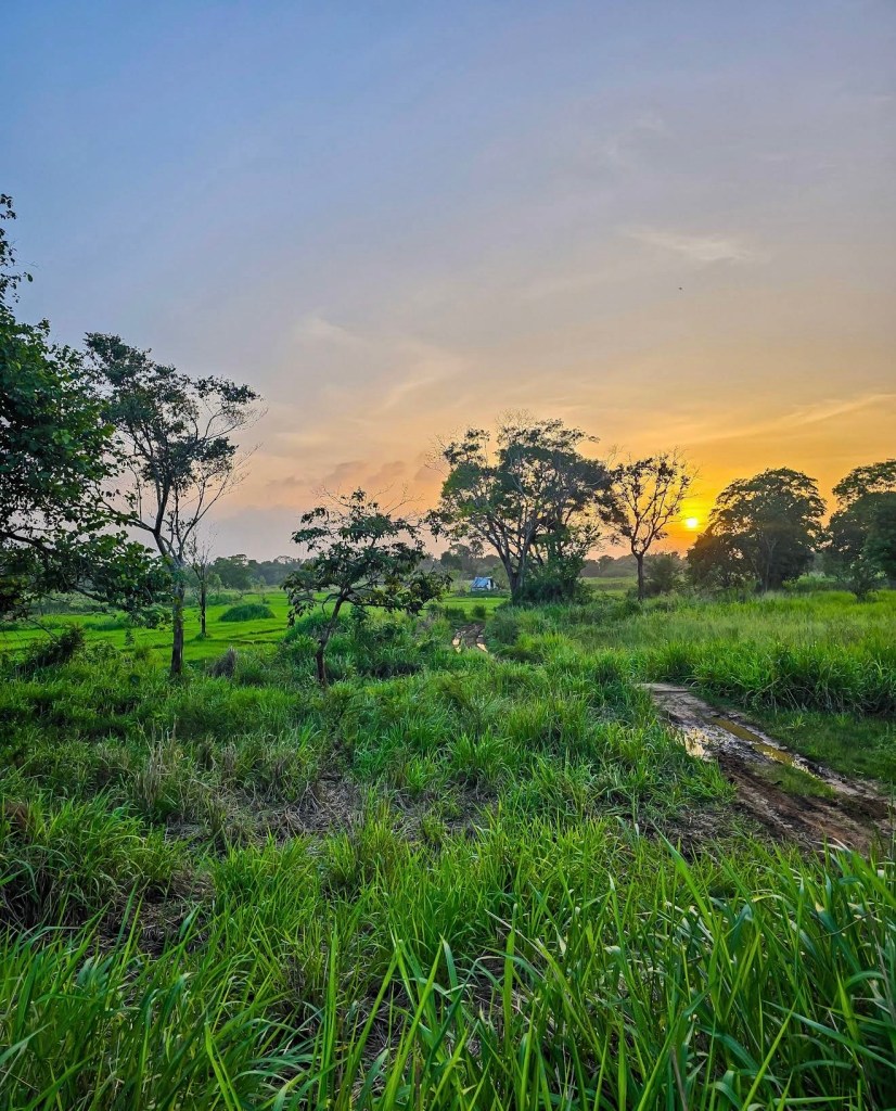 Depuis Colombo, le trajet vers Sigiriya est une aventure en soi. Le bus express traverse les rizières vertes à perte de vue, les palmiers qui se balancent doucement au vent, et de petits villages où les enfants jouent sur le bord de la route. Chaque virage révèle un nouveau panorama, comme si la campagne sri-lankaise défilait devant toi comme un tableau vivant. Après 4 à 5 heures, on arrive à Habarana, puis un tuk-tuk me conduit au village de Sigiriya. La petite route de terre et les maisons colorées annoncent déjà que je ne suis pas dans un lieu ordinaire.