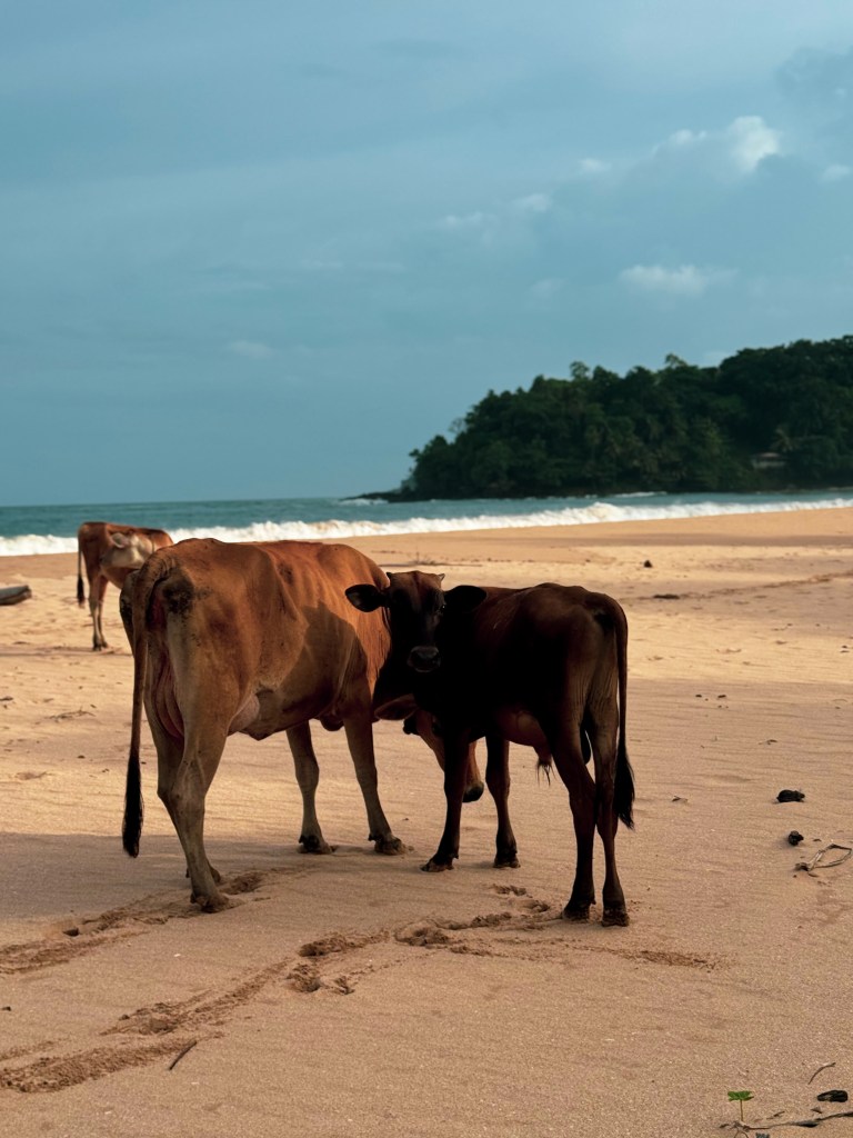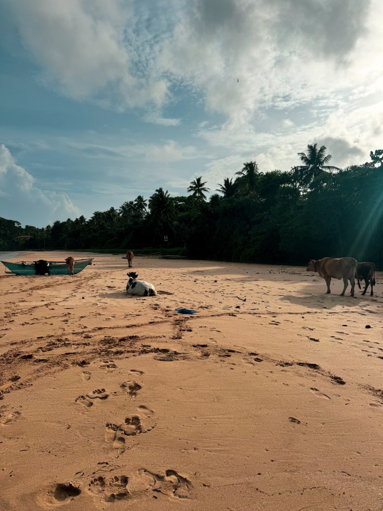 Le lendemain, changement d’énergie. Daniel repart vers l’Espagne avec Tharu, et me voilà en duo avec Sergio. L’ambiance devient plus calme, plus posée. On passe une journée ultra simple : plage le matin, plage le soir, et entre les deux… rien. Lecture à l’ombre, pieds dans le sable, cerveau complètement off. Et parce que le Sri Lanka aime surprendre : une vache se promène tranquillement sur la plage, comme si c’était la chose la plus normale au monde. Impossible de ne pas rire.