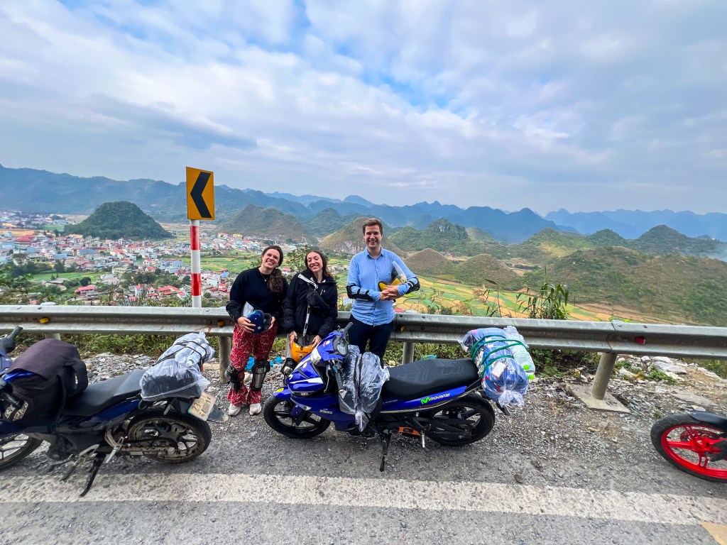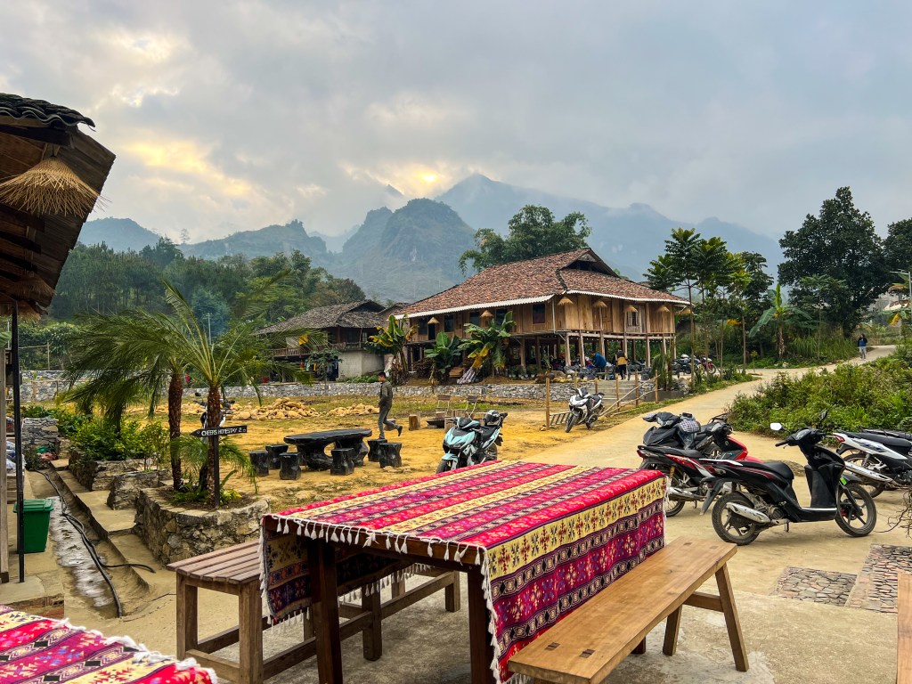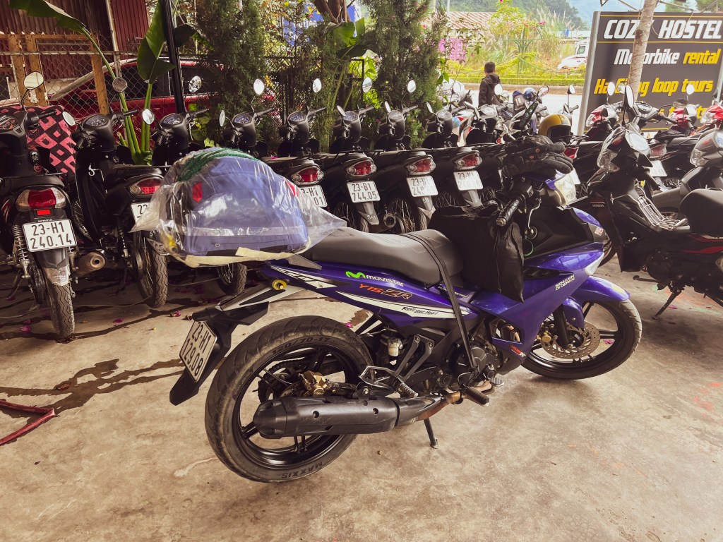 J’ai donc réservé via mon hostel, le Ha Giang Riverside Hostel. Et avec le recul, je pense que c’était une des meilleures décisions du voyage. Pour environ 300 CAD pour 4 jours, tout était inclus : la moto, l’essence, les repas, alcool, un guide absolument incroyable, deux nuits en campements simples mais immersifs, et une nuit dans un hébergement beaucoup plus confortable, presque inattendu après deux jours en pleine nature. La seule chose non incluse, c’était les pourboires pour le guide.