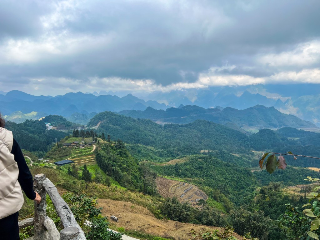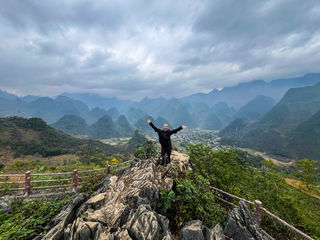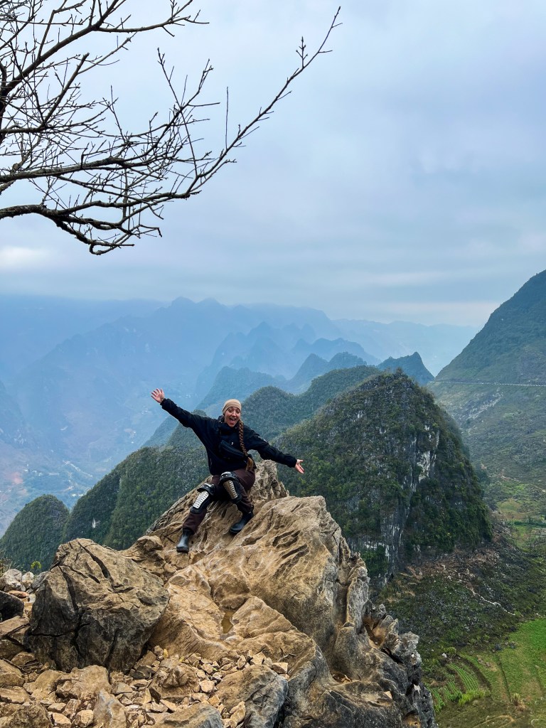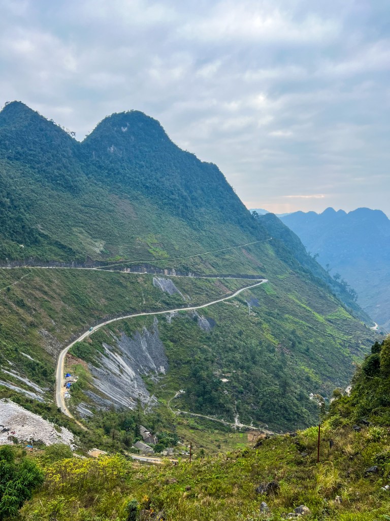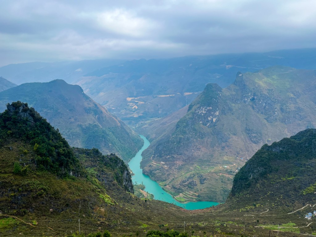 La Ha Giang Loop, c’est un des paysages les plus impressionnants que j’ai vus de ma vie. Des montagnes karstiques gigantesques, des vallées profondes, des routes qui serpentent au bord du vide, des villages isolés accrochés à flanc de montagne. Par moments, tu peux même apercevoir la frontière chinoise au loin, comme une ligne invisible entre deux mondes.