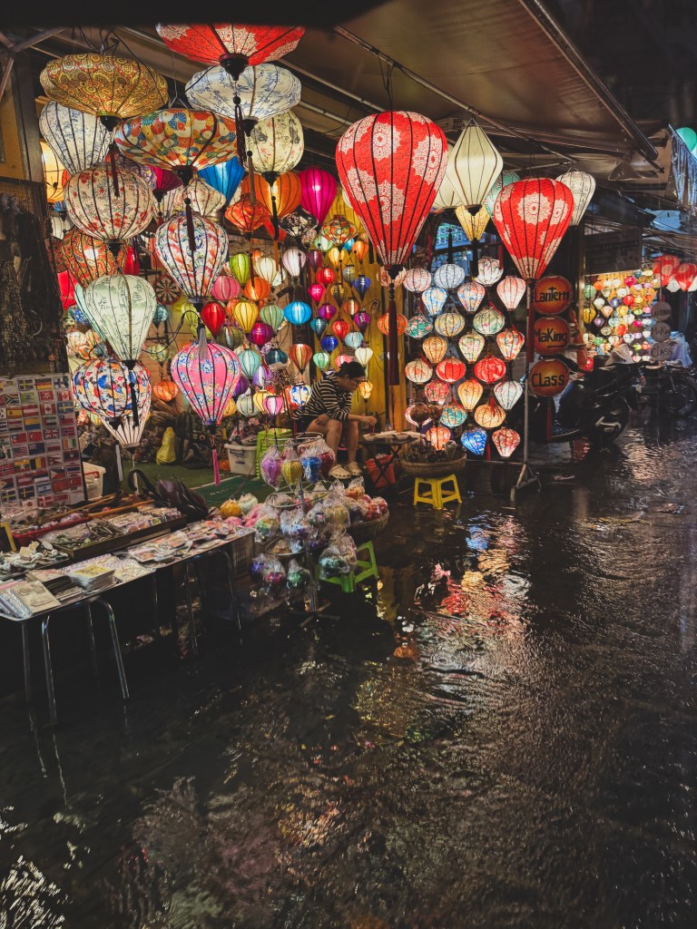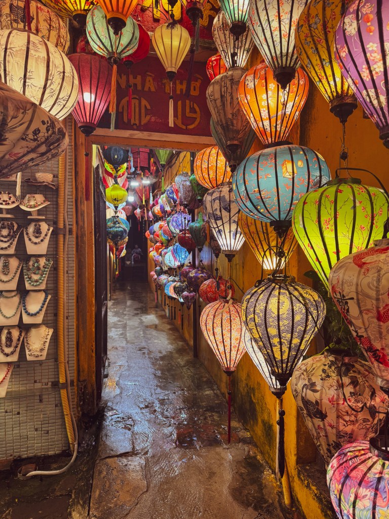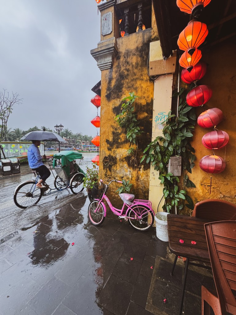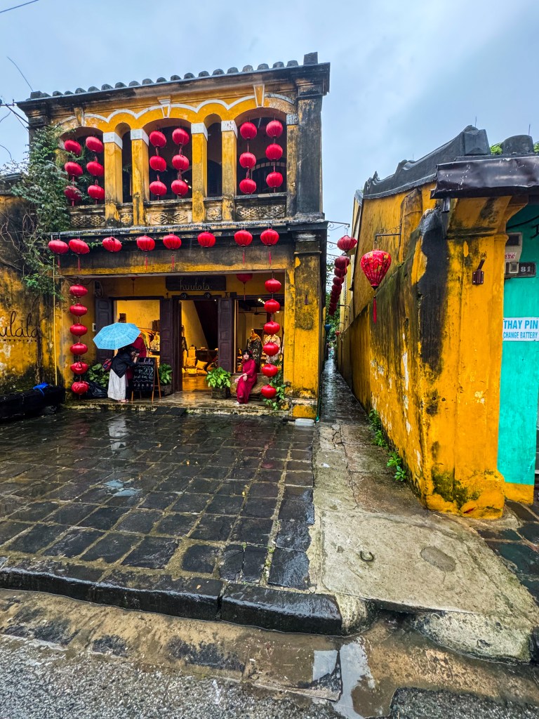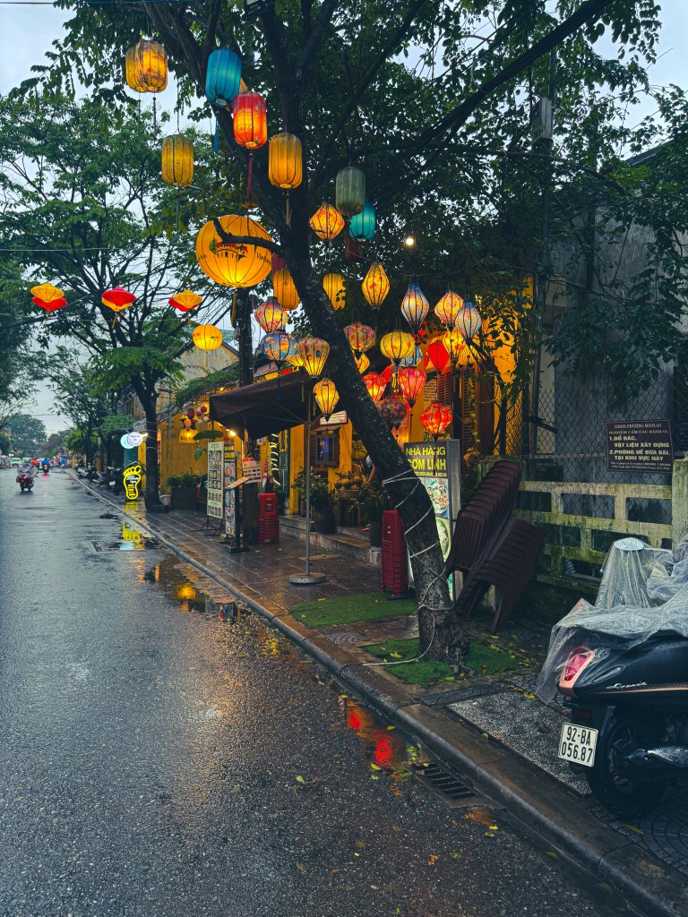 Dès notre première journée, on a quand même décidé de marcher dans Hội An, même sous la pluie. On s’est dit qu’à ce point-là, autant vivre la ville à fond. Ça nous a permis de découvrir une ambiance différente, presque mystique, avec les rues presque désertes et les lanternes qui se balançaient dans la pluie.