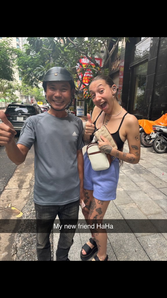 Une autre journée, on a rencontré Haha, un Vietnamien qui vendait des tours en moto. Oui, oui, on sait… attrape-touriste. Mais honnêtement ? Le prix était bon, la vibe aussi… alors pourquoi pas.