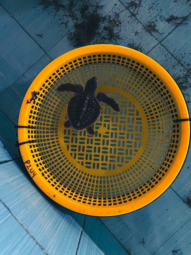 Là-bas, ils recueillent des tortues blessées, malades ou sauvées de situations illégales. Ils les soignent, les gardent en sécurité, puis les relâchent quand elles sont prêtes à retourner dans l’océan. Il y a aussi des bassins avec des bébés tortues, minuscules, fragiles, presque irréelles. Tu les regardes nager et tu réalises à quel point elles sont vulnérables… et à quel point leurs chances de survie dans la nature sont faibles. Ça remet les choses en perspective.