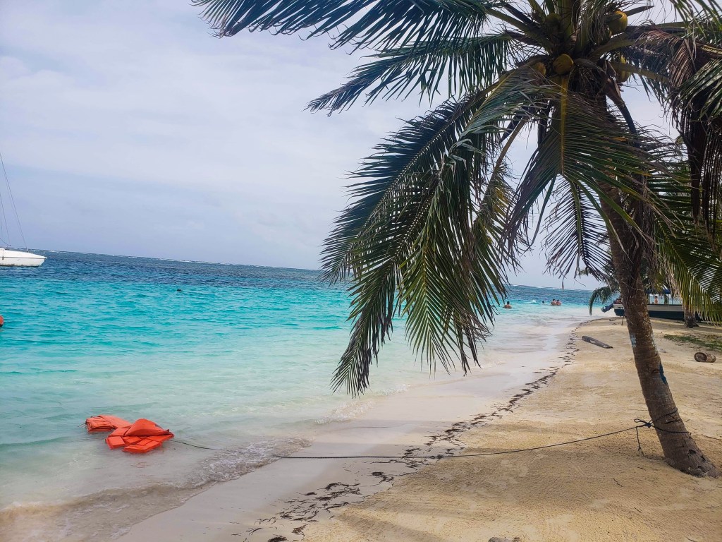 Les journées là-bas sont d’une simplicité totale. On mange très bien, souvent du poisson fraîchement pêché, du riz, du plantain, parfois du homard selon les îles et les saisons. Tout est frais, sans complication, et ça goûte incroyablement bon parce que c’est directement de la mer à l’assiette. Entre les repas, on passe le temps à nager, à se balancer dans un hamac, à marcher sur les petites bandes de sable qui disparaissent parfois à marée haute.
